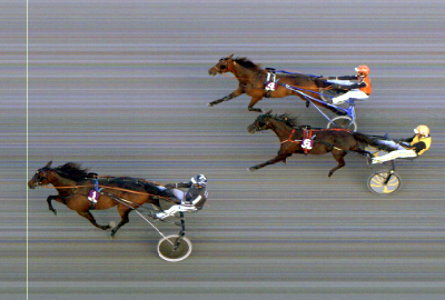 Karlo Vang (Six Pack) med Rune Wiig var storfavorit i et sprinterløb – spillet til 15:10, men Geir Mikkelsen bag Arya Star havde ingen respekt for Karlo Vang og pressede hårdt for at få spids.
