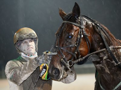 Jeppe Juel med Triton Neergård efter onsdagens sejr på Åby Travet. Foto Kanal 75