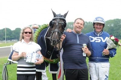Per Damberg styrtede i prøveløbet på Lunden pga. defekt sulky, men kom heldigvis ikke alvorligt til skade.