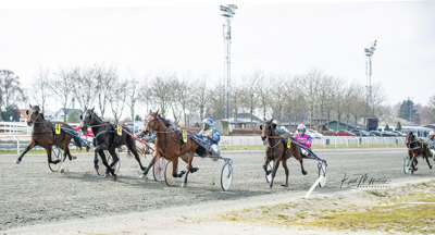 Det betรธd at kuskene tog op i de unge heste, men efter tilrรฅb fra publikumspladserne fortsatte deltagerne og fuldfรธrte lรธbet โ de hurtigste afsluttede efter 1.24 de sidste 500 meter.