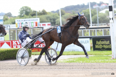 -Vi har haft hende inde på banen i Aalborg et par gange, hvor Kent Friborg har kørt den, og et var vel også meningen at han skulle have kørt hende i dag, men han havde jo en anden hest han skulle starte i løbet. Derfor blev det Jeppe Rask, og han gjorde det jo fint, siger Inge Sudergaard.