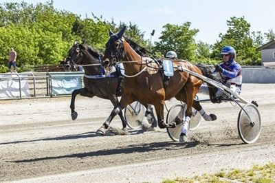 Det var Elektra Henley, som Anders Pedersen på billedet bragte til sejr på Billund Trav foran E Type Cash.