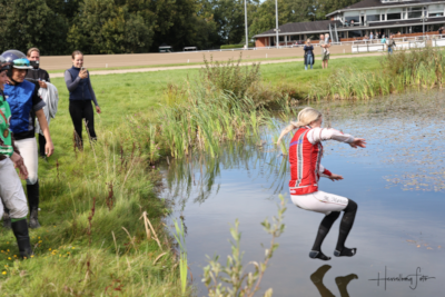 Michelle Mønster fik den obligatoriske tur i søen. Hesselborg Foto