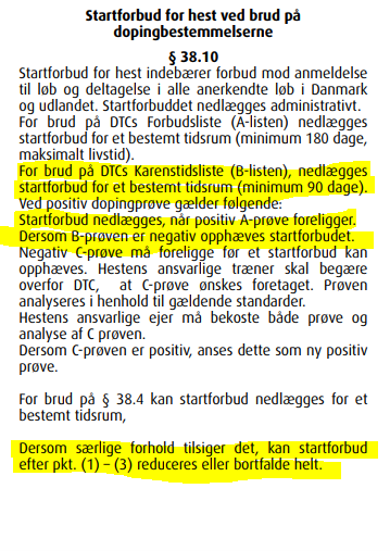Bestemmelsen siger, at der nedlægges startforbud på minimum 90 dage, hvis der er brud på DTC’s forbudsliste B.