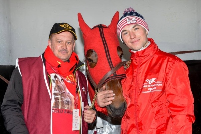 Lundens fotograf, Kim Gudmand er stor fan af Bold Eagle og er pรฅ plads i Stockholm. Dette er dog et foto fra Prix d’Amerique, hvor Kim G. for engang skyld var kommet pรฅ den ย anden side af kameraet – og sammen med Bold Eagle og dennes staldmand Hugues.