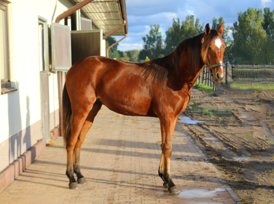Det er en hingst, som er fri på røntgen, og har været i vogn et par måneder.