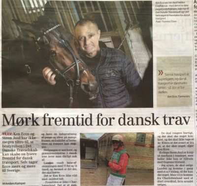 I en artikel i den sjællandske avis, Dagbladet, der bringes under overskriften ”Mørk fremtid for dansk trav” interviewes to af Lundens førende trænere, Steen Juul og Ken Ecce om fremtiden for Charlottenlund Travbane.