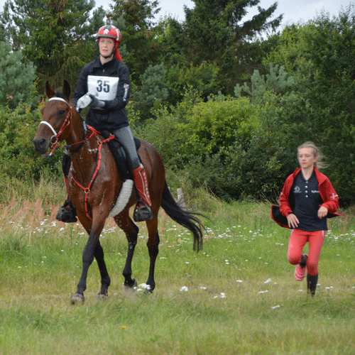 Det er min kone Karen, der normalt rider vores hest, men da vi venter et nyt familiemedlem i รฅr havde vi lavet en aftale med Young rider Rikke Arkesteijn,ย da hendes egenย hest var skadet.