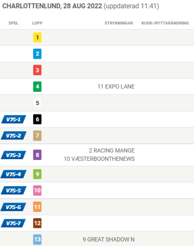 Der er fire udgåede heste til eftermiddagens program på Charlottenlund Travbane.
