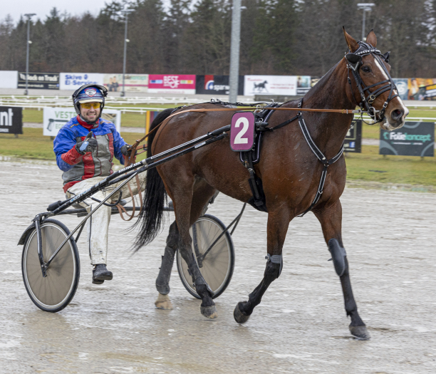 James on Flame, der ejes og trรฆnes af Pauli Andersen, afsluttede fint sejr i 1.16.0a/2060 m foran den mere betroede Justgivemeareason med Peter ร. Andersen.