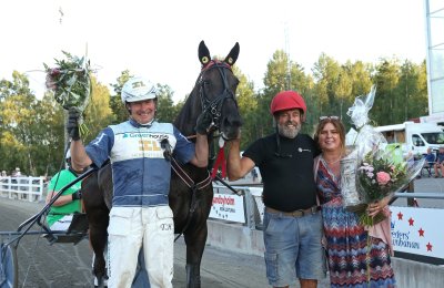 Det var ogsรฅ tredje sejr i รฅr til The Bald Eagle, der trรฆnes af Reijo Liljendahl. Totalt har den 5-รฅrige vallak nu tjent 855.000 SEK, sat rekord 1.11.0 og vundet 7 ud af 37 starter.