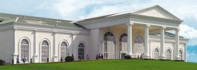 Den pompøse restauration, casino og tribunebygning på Magna Racino.
