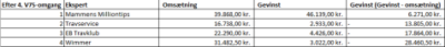 På andenpladsen ligger Travservice med det mindst underskud af de tre øvrige hold.